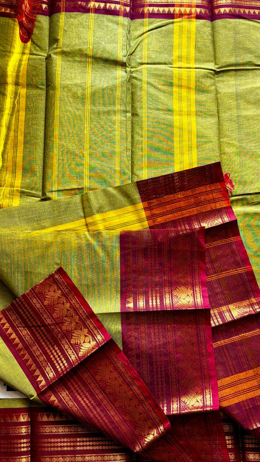 ചേല 💛(cotton Set saree with Running Blouse piece - 5inch Kara)