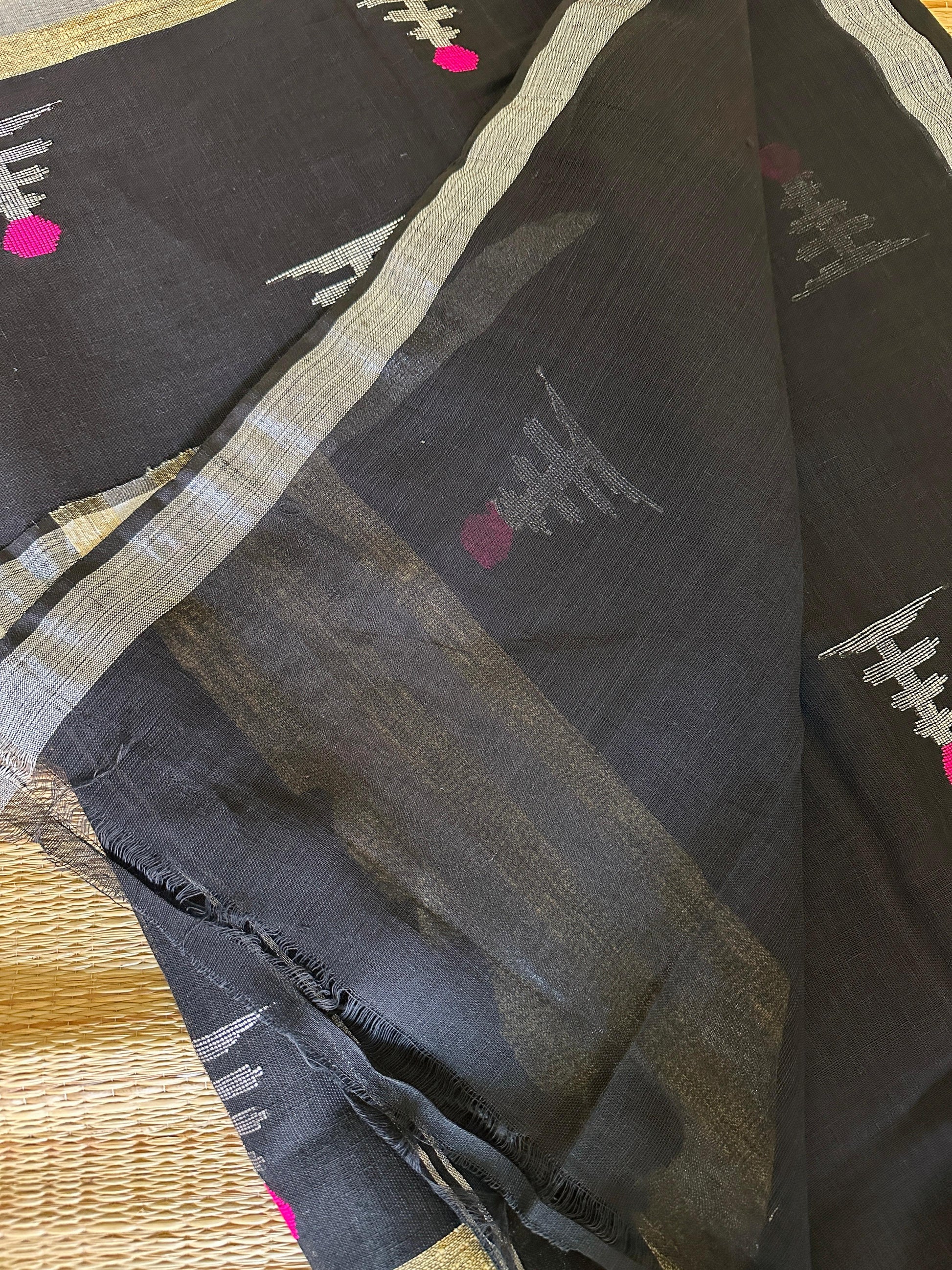 Black Charm🖤 🩷🌷(Premium Linen Soft Cotton Saree with Running Blouse piece)