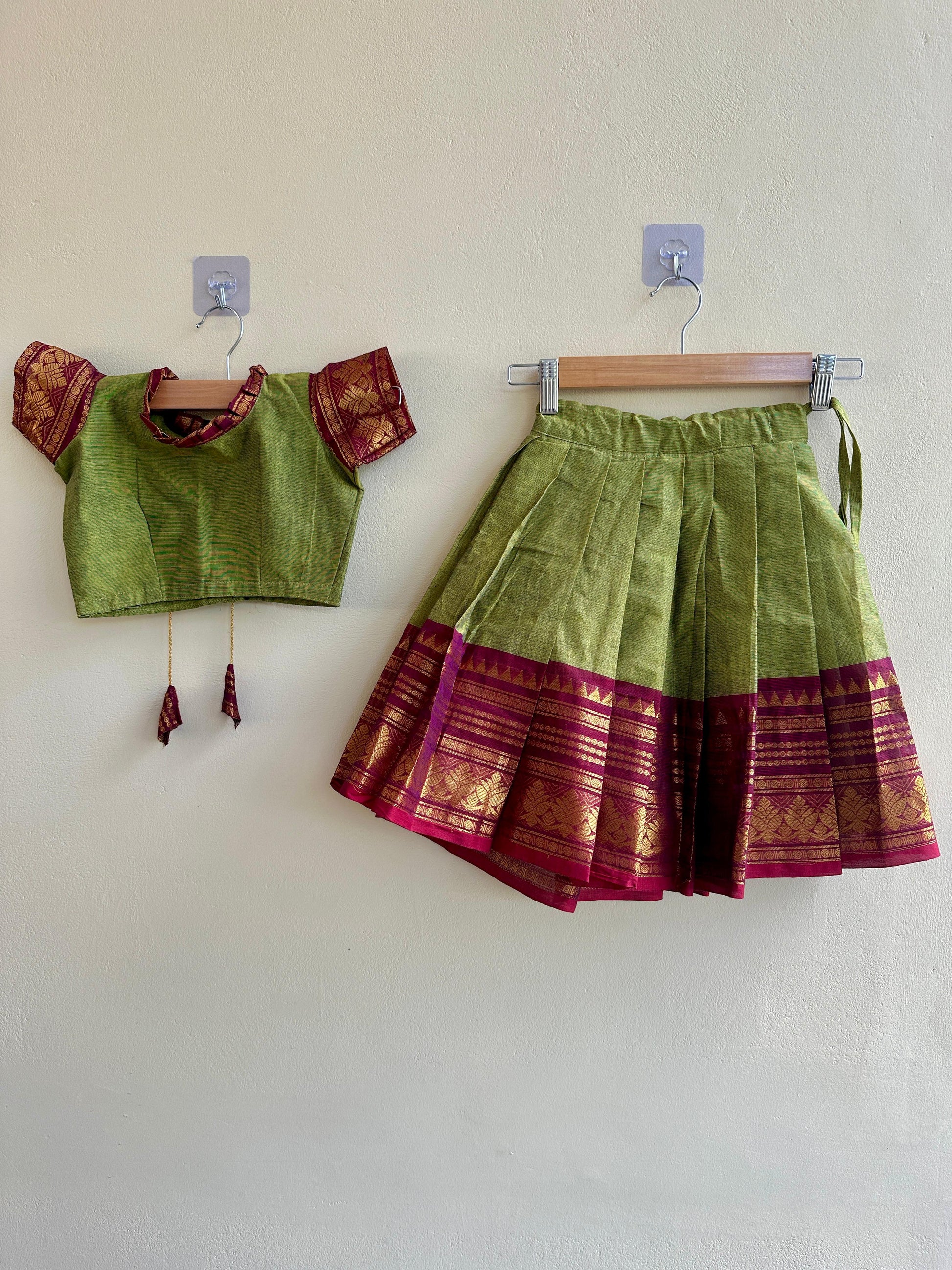 A charming blend of tradition and comfort, this Chettinad cotton pattu pavadai is designed especially for your little one’s graceful moments.
