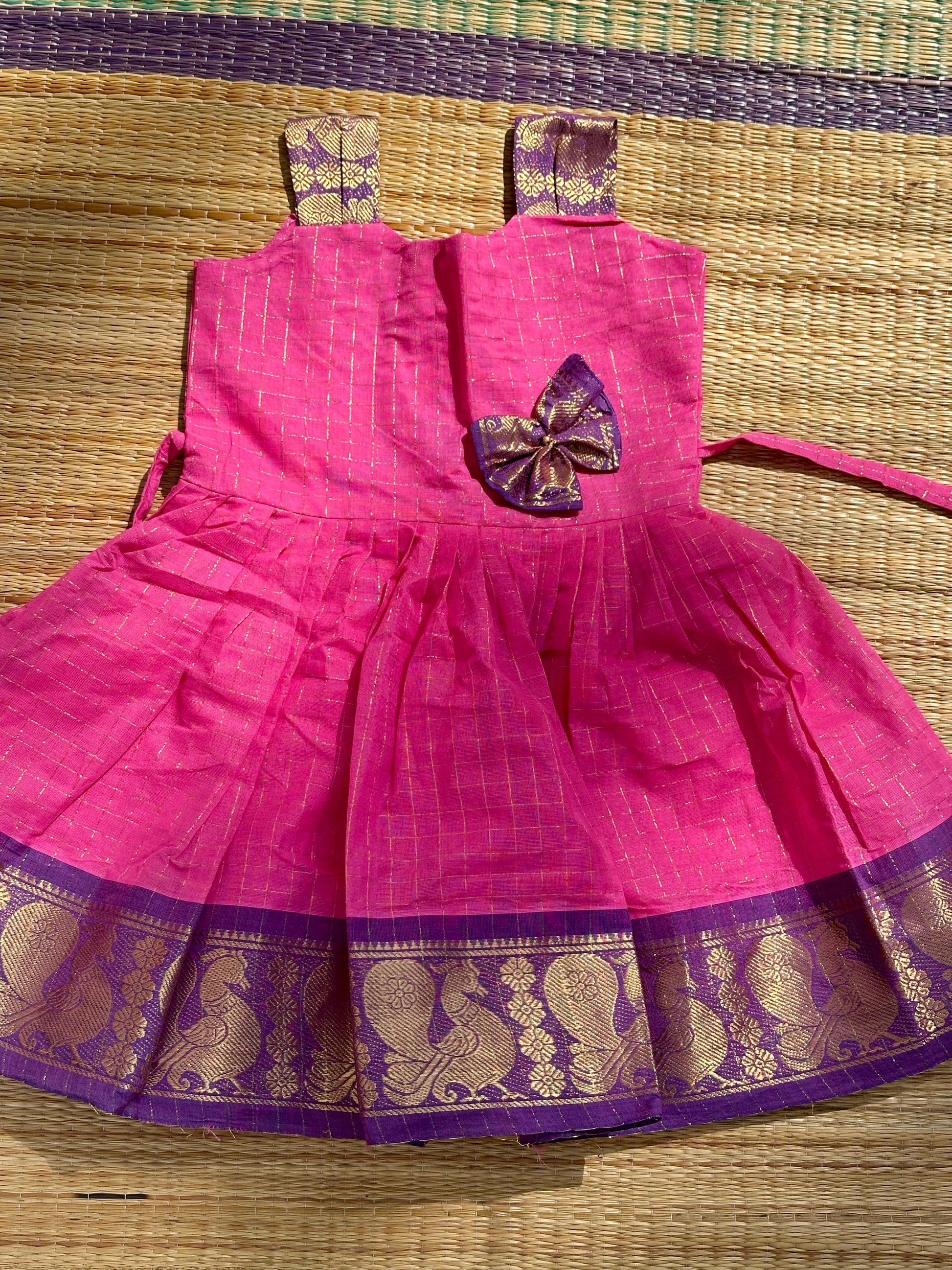 Made from authentic Chettinad handwoven cotton, it’s lightweight, breathable, and gentle on soft skin perfect for festive days, temple visits, and family celebrations.
