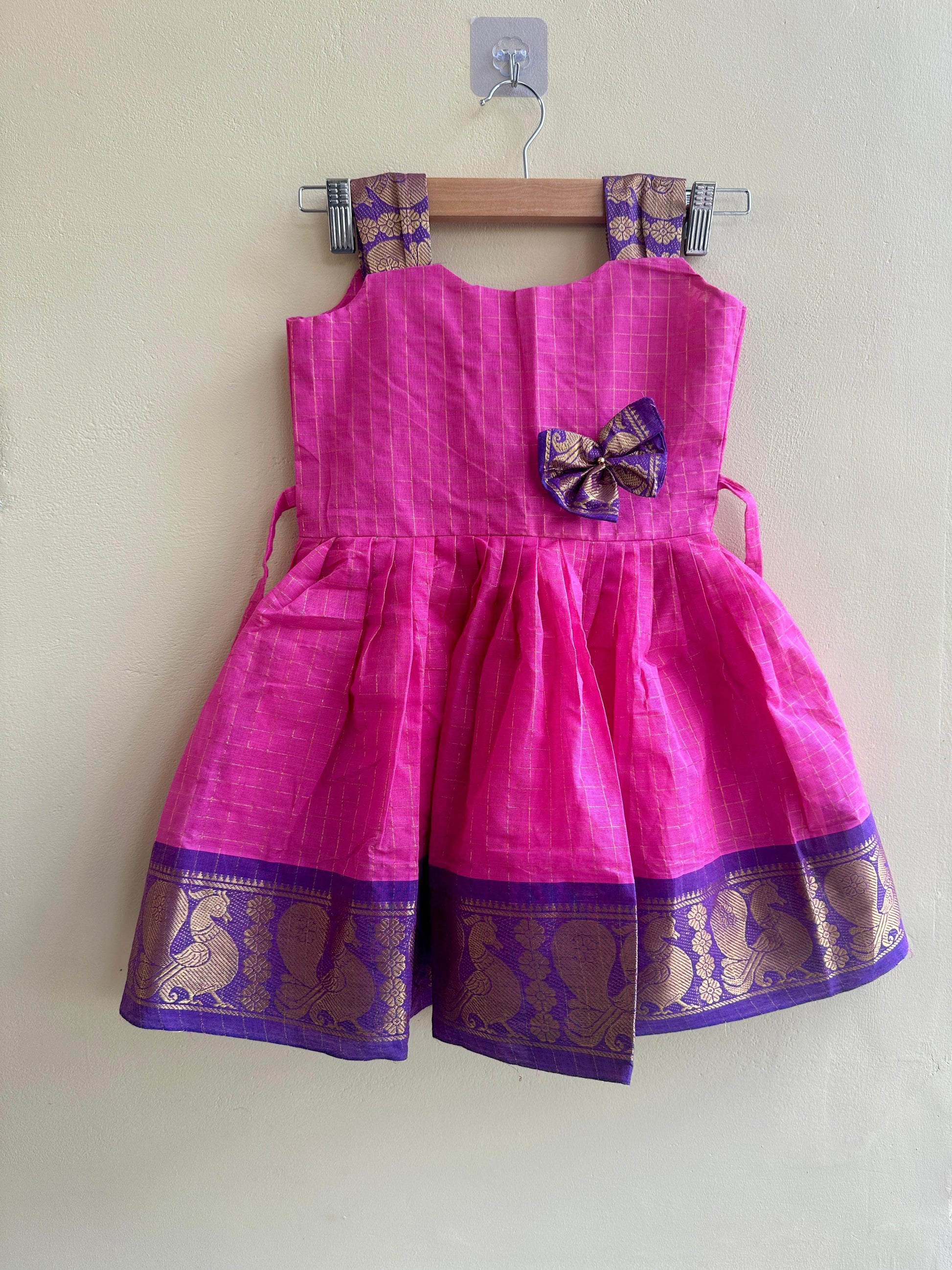 A charming blend of tradition and comfort, this Chettinad cotton pattu pavadai is designed especially for your little one’s graceful moments.